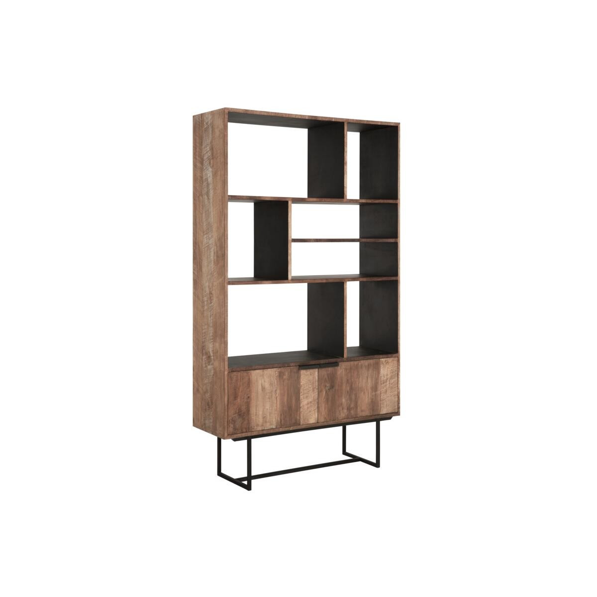 Odeon-kirjahylly on valmistettu tiikkipuusta ja siinä on musta metallirunko. Kirjahyllyn mitat ovat 120x40x210 cm, siinä on 2 ovea ja 7 avointa hyllyä.