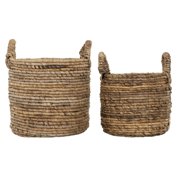 Tämä banaanikuoren korisarja koostuu kahdesta kappaleesta, joiden mitat ovat Ø33x36 cm ja Ø38x44 cm. Molemmilla Pretoria-koreilla on luonnollinen väri. Tämä on sarja banaanikuoren koreja kahdessa eri koossa, kaikki luonnollisessa sävyssä.
