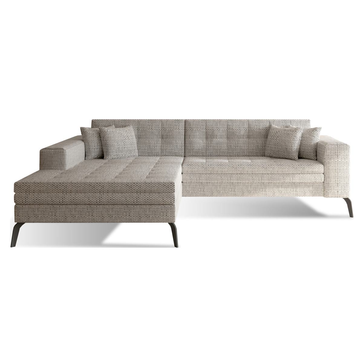 Tämä moderni Solange-kulmasohva on täydellinen huonekalu suurille perheille tai vieraiden vastaanottamiseen. Se on ihanteellinen ja tilava paikka rentoutua todellisella koollaan 295x195x80 cm ja istuinkorkeudella 51 cm. Tämä sohva on valmistettu korkealaatuisista kankaista, joissa on kestävät teräsjalat. Se varmistaa maksimaalisen mukavuuden leveillä käsinojillaan. Sitä voidaan käyttää myös suurena 210x126 cm: n vuoteena, kun se avataan delfiinijärjestelmän ansiosta. Tämä sohva on olemassa lukuisissa Eltap-kangasväreissä.