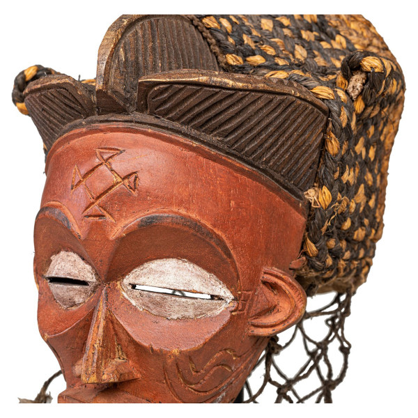 Tämä Chihongo-naamio, alun perin Angolasta, on hieno esimerkki afrikkalaisesta taiteesta ja kulttuurista. Se on peräisin 1900-luvulta ja mitat 19x21x28 cm. Chihongo-naamioita käytettiin perinteisesti Chokwen uskonnollisissa ja sosiaalisissa seremonioissa. Heidän piti edustaa esi-isien tai jumalien henkiä. Tämä ainutlaatuinen naamio on veistetty puusta ja edustaa mieshenkeä. Kasvot on pyöristetty ja merkitty Pyhän Andreaksen ristillä. Silmät ovat puoliksi suljettuja ja ”kyynelmerkit” näkyvät silmien alla. Nenä on leveä ja suu on auki, terävillä hampailla.