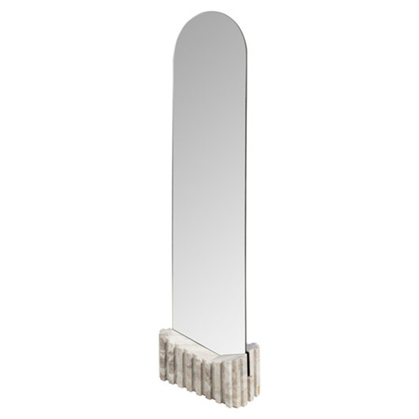 Roomalainen peili on koristeellinen mestariteos, joka erottuu vaikuttavista mitoistaan 20,9x46,3x165 cm. Tämä peili on valmistettu poikkeuksellisella huomiolla yksityiskohtiin, ja se on harmoninen lasin ja marmorin yhdistelmä, joka luo täydellisen yhdistelmän eleganssin ja kestävyyden välillä. Värin ja rakenteen vaihtelu voi olla näkyvissä kiven luonnollisen luonteen ja tämän tuotteen käsintehdyn viimeistelyn vuoksi.