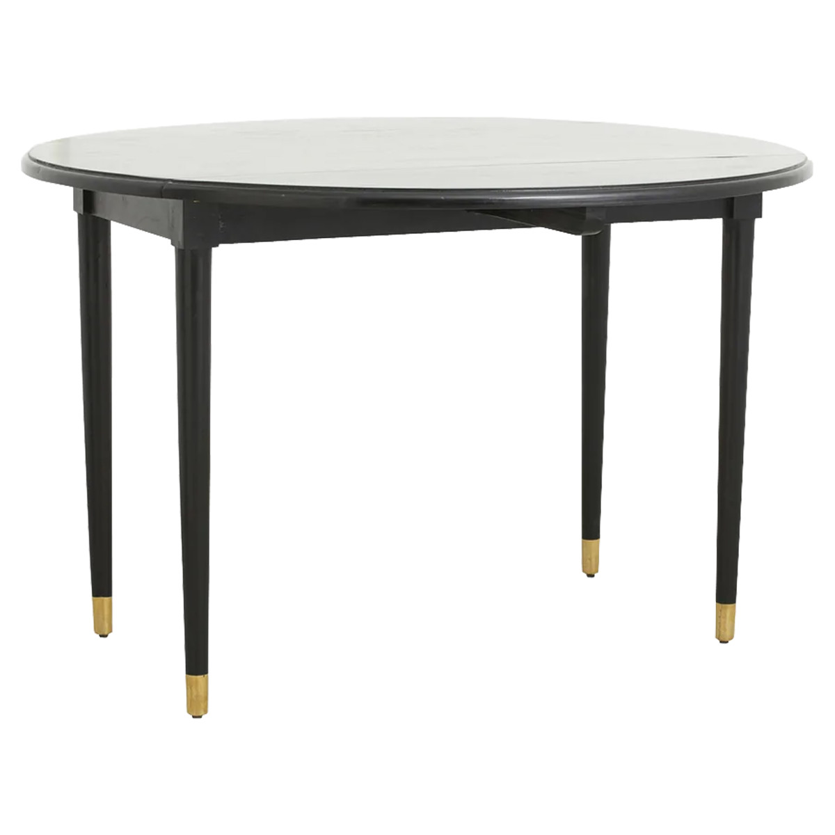 Tämä kaunis AHR-pöytä on käytännöllinen huonekalu ahtaisiin tiloihin. Se on taitettava kahdelta puolelta, leveys 60 cm taitettuna. Se on lakattu viimeistely ja sen jalat on koristeltu kultametallilla. Tämä ø119x76 cm pöytä on valmistettu mangopuusta ja messingistä.