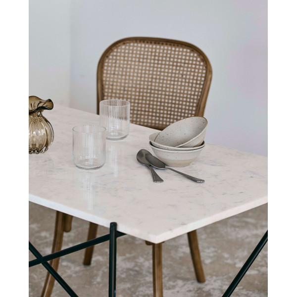 Tämä Nordal-tuotemerkin taulukkomalli optimoi ruokasalin, keittiön tai toimiston tilan tyylinsä ja muotoilunsa ansiosta. Se koostuu valkoisesta marmorista yläosasta ja mustista putkituista. Nämä yhdistetyt materiaalit tekevät tästä taulukosta näyttävän hyvältä huoneessa, jossa se on sijoitettu. Tämän taulukon koko on 142x70x76 cm.
