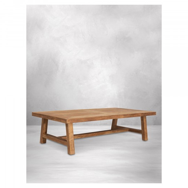 Tämäluostarin sohvapöytä on mukava lisä olohuoneeseen. Hienostuneen ja ainutlaatuisen muotoilunsa ansiosta tämä DTP Homen kierrätetystä teakpuusta valmistettu huonekalu mukautuu helposti sisustukseen. Se on luonnollinen suorakulmainen pöytä, jonka koko on 130x35x70 cm.