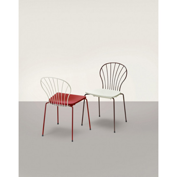 Tuoli, Marc Sadler suunnittelu. Polypropeeni-istuin, teräslankainen selkänoja, runko 4 teräsjalkaa