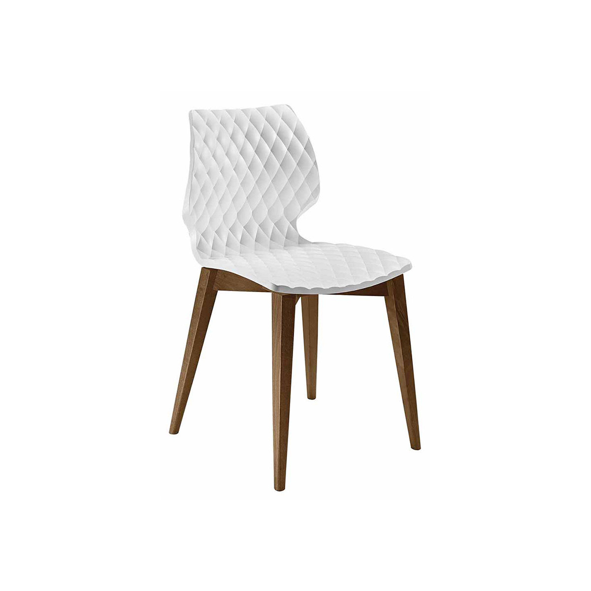 Tuoli, design Francesco Geraci. Polypropeeni istuin, runko 4 puujalat