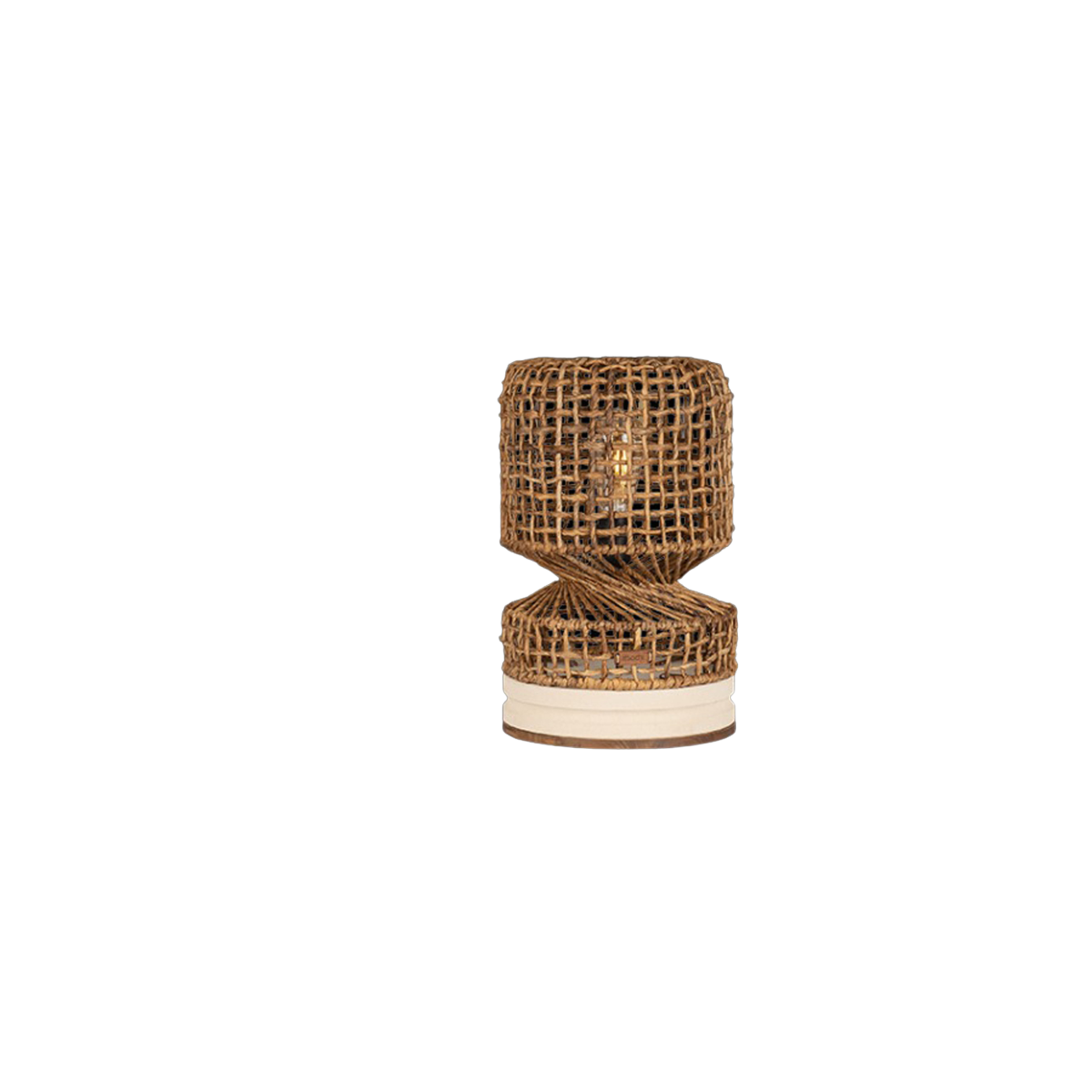 La lampe de table Twister est un luminaire autonome conçu dans un style de "piège à poissons" en utilisant un cadre en métal et enveloppé dans de l'écorce d'Abaca pour créer un aspect tissé rustique et agréable. Les lampes ont des détails élégants de "torsion" et sont posées sur une base en pierre de sable solide et tournée à la main, offrant à la fois stabilité et sécurité.