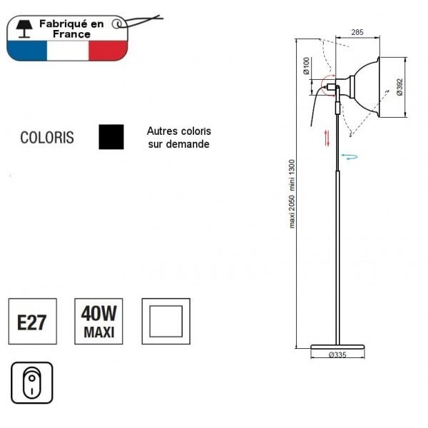 Le lampadaire-projecteur Reflex 2 permet d’orienter la lumière selon ses besoins. Il apporte une touche “plateau de cinéma”. Il est doté d'une à hauteur réglable, d'une douille E27 (ampoule non fournie) et d'un interrupteur marche/arrêt sur le réflecteur. Le câble électrique est recouvert de textile coloré. Il est fabriqué en France et est fait de métal.