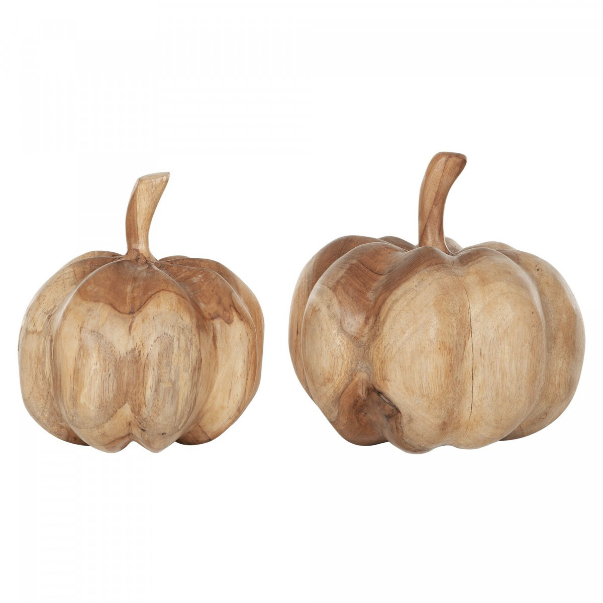 Ces 2 citrouilles sont sculptés dans le bois pour une côté rustique et authentique. Elles mesurent Ø16x19 cm et Ø19x20 cm.