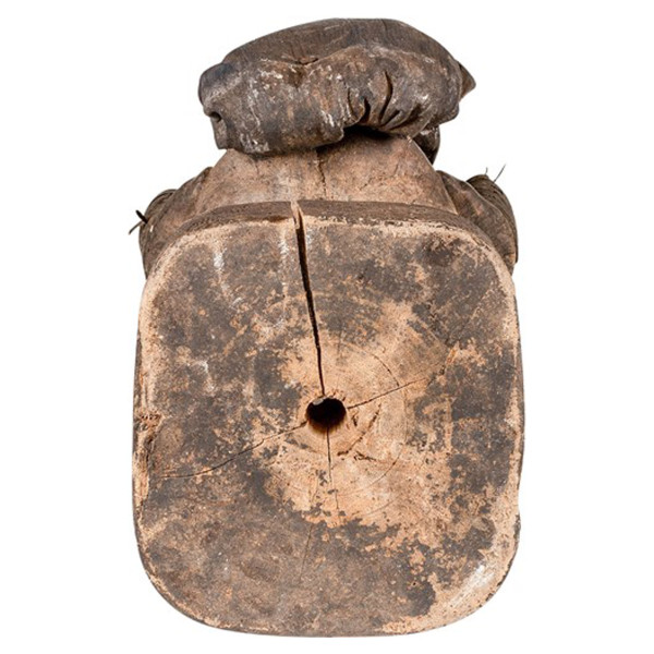 Les 300 000 Yombe, d'une prolificité artistique remarquable, incarnent leur maîtrise dans cette sculpture congolaise. Les ancêtres, représentés avec des coiffures hautes et incisées de motifs géométriques, sont captivants. Cette pièce, mesurant 22x19x57 cm, met en avant la tête avec une bouche ouverte et des dents limées, soulignant l'importance de la communication spirituelle. Faite de bois et de tissu coloré naturel, cette sculpture témoigne de la richesse culturelle des Yombe, fusionnant l'art et la spiritualité avec élégance.