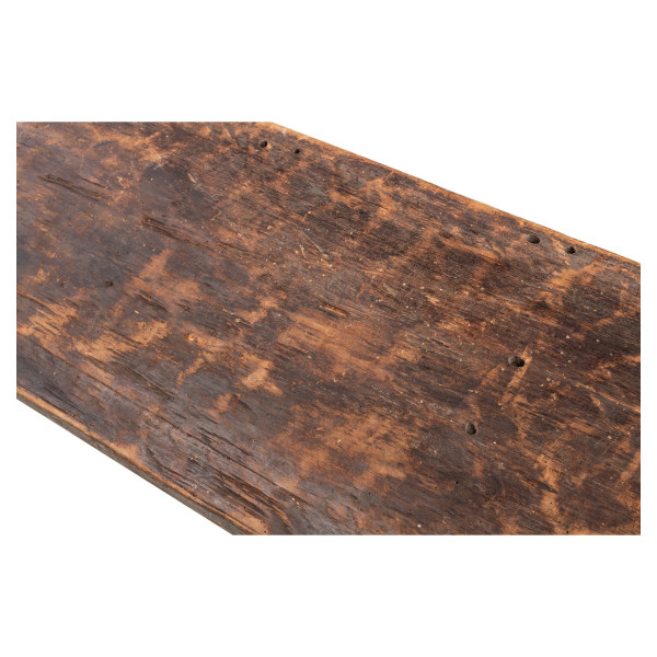Ce panneau mural exceptionnel, originaire de la tribu Pende en RD Congo, dépeint en relief une imposante figure masculine coiffée d'un chapeau, reposant sur un fond géométrique triangulaire. Mesurant 13,5x29x86 cm et façonné dans du bois naturel, il représente une figure d'ancêtre, symbole de prestige et de commémoration du chef de clan. Traditionnellement placé à l'entrée de la cabane du chef, ce panneau de décoration du 20e siècle témoigne de l'art raffiné et de la richesse culturelle des Pende.