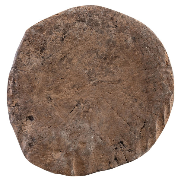 Cette sculpture est un modèle unique des sculptures en bois Lega du milieu du 20ème siècle, originaire de la République Démocratique du Congo. L'œuvre mesure 32x28,5x77 cm. Elle dépeint une figure humaine debout avec des traits exagérés : yeux fermés, bouche proéminente et oreilles détaillées. Les bras de la figure sont croisés sur sa poitrine, et elle est positionnée au-dessus d'une base circulaire ornée de motifs incisés. La sculpture montre une patine uniforme et des signes d'ancienneté et d'usage.