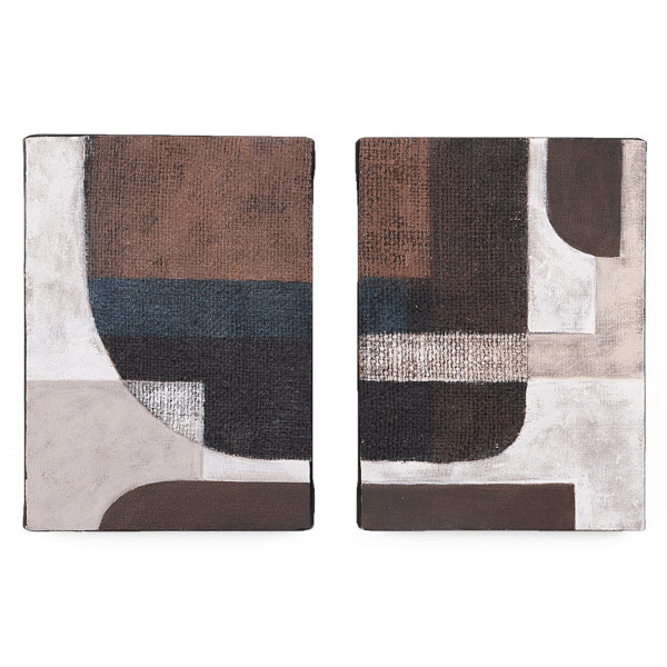 Το Devotion - Balancing Board είναι ένα έργο τέχνης που είναι εμπνευσμένο από τη φύση. Είναι κατασκευασμένο από κομμάτια παλαιών σακουλών ρυζιού, δεμένα μαζί με επαναχρησιμοποιημένο ύφασμα λινάτσας. Το όλο θέμα είναι τεντωμένο πάνω από ένα ανακυκλωμένο ξύλινο πλαίσιο βαμμένο μαύρο, τελειωμένο με βαφή με βάση το νερό. Αυτή η δημιουργία αποτελείται από δύο πίνακες ζωγραφικής, διαστάσεων 27x5x37 cm έκαστο, και είναι ιδανικό για να προσθέσει μια οικολογική και καλλιτεχνική πινελιά στο σπίτι ή στο γραφείο.