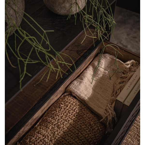 Αυτή η βάση τηλεόρασης Karma με 2 συρτάρια και 1 ανοιχτό ράφι είναι ένα όμορφο έπιπλο από τη συλλογή Karma. Αυτή η μονάδα δύο συρταριών είναι χειροποίητη από ξύλο αναγεννημένο και έχει σιδερένια πόδια καθώς και όμορφα δομημένα συρτάρια από ραττάν. Η παιχνιδιάρικη θέση των ποδιών του προσθέτει μια πιο vintage πινελιά στα μέσα του αιώνα στο σχέδιο. Αυτό το έπιπλο είναι η τέλεια επιλογή για όποιον θέλει να προσθέσει μια νότα γοητείας και κομψότητας στο σπίτι του.