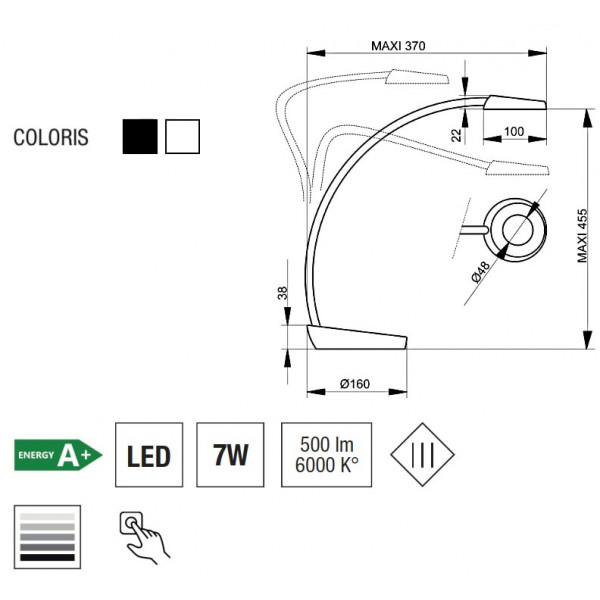 Η Skyline είναι μια πολύ εύχρηστη επιτραπέζια λάμπα, με λιτό σχεδιασμό. Ρυθμίζεται σε ύψος χάρη στον ευέλικτο βραχίονα από ατσάλι με επικάλυψη σιλικόνης «soft touch». Ο διακόπτης αφής στη βάση επιτρέπει την επιλογή μεταξύ 3 επιπέδων φωτεινότητας. Το ενσωματωμένο LED μονάδα έχει ισχύ 7W και 500 km. Η σύνθεσή της είναι από ατσάλι, αλουμίνιο και συνθετικό υλικό.