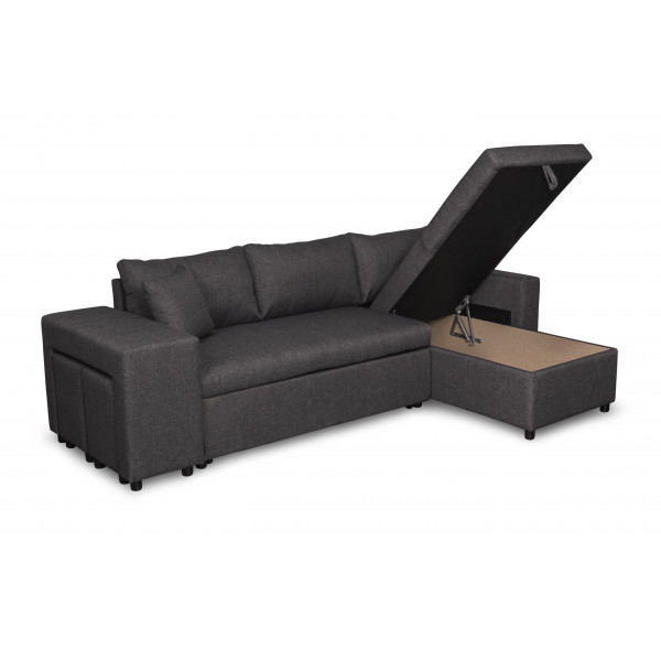 Γωνιακός καναπές αριστεράς γωνίας μετατρέψιμος Maria Plus με σταθερή εσοχή στα αριστερά και 2 πουφ
