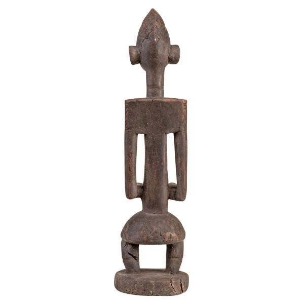 Αυτό το ειδώλιο Dyonyeni, που προέρχεται από τη φυλή Bambara στο Μάλι, είναι ένα μοναδικό έργο. Χρονολογείται από τα μέσα του 20ου αιώνα και έχει διαστάσεις 17x13,5x60 εκ. Το σχήμα δείχνει σημάδια φθοράς, αλλά παραμένει σε καλή κατάσταση. Η πατίνα γήρατος που την καλύπτει είναι όμορφη και της δίνει ιδιαίτερη γοητεία. Οι σαρώσεις στο σώμα είναι επίσης αξιοσημείωτες. Είναι σύμβολο της γονιμότητας και της ζωής.