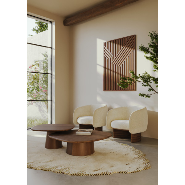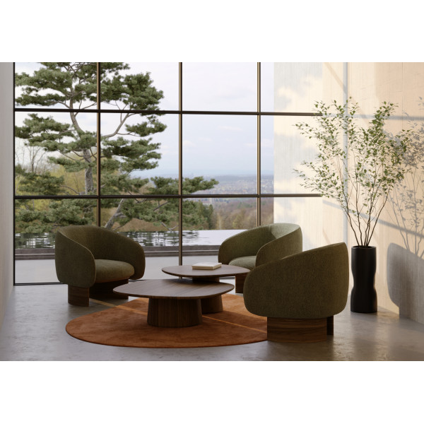 Η πολυθρόνα Nido είναι μια πρωτότυπη δημιουργία του σχεδιαστή Christian Haas. Με τις καμπύλες του, θυμίζει τη φωλιά, ένα ήσυχο μέρος για να ξεκουραστείτε. Αυτό το κομμάτι των επίπλων της μάρκας Wewood έχει διαστάσεις 81.5x70x74.5 και έχει ύψος καθίσματος 45 cm. Η βάση του είναι από μασίφ ξύλο καρυδιάς. Η γενναιόδωρη επένδυση παρέχει άνεση. Το ποιοτικό ύφασμα συμπληρώνει το σχεδιασμό του καθίσματος και της πλάτης με μπράτσα περιτυλίγματος.
