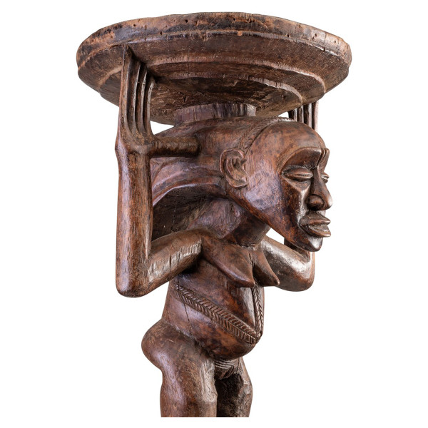 Αυτό το σκαμνί Luba του 20ού αιώνα είναι ένα αξιοσημείωτο παράδειγμα της γλυπτικής τέχνης αυτού του πολιτισμού. Είναι μοναδικό και κατασκευασμένο εξ ολοκλήρου από φυσικό ξύλο και έχει διαστάσεις 35,5x37,5x61 εκ. Αυτό το σκαμνί Luba είναι ένα αξιοσημείωτο έργο τέχνης που προσφέρει μια ματιά στον πλούσιο πολιτισμό και τη γλυπτική παράδοση αυτού του λαού. Είναι ένα ισχυρό σύμβολο δύναμης, εξουσίας και πνευματικότητας.