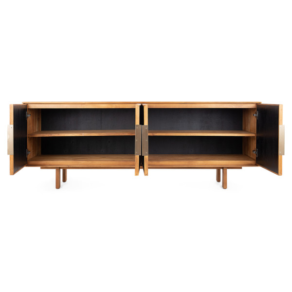 Το Grace teak control τοποθετημένο σε ένα μικρό βάθρο έχει 4 πόρτες κοκοφοίνικα πλεξούδες, ορειχάλκινες μανσέτες και μια σταθερή δομή από ανακυκλωμένο ξύλο τικ. Αυτό το έπιπλο είναι μια ρετρό και κομψή προσθήκη σε οποιοδήποτε στυλ δωματίου. Έχει διαστάσεις 180x40x63,5 εκ.