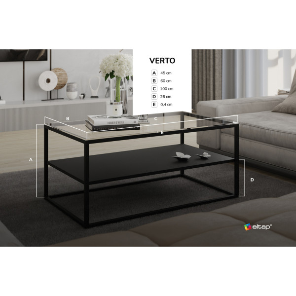 Αυτό το μαύρο τραπέζι Verto θα προσθέσει πολύ στυλ και κομψότητα στο εσωτερικό. Προσαρμόζεται σε όλα τα στυλ, ταυτόχρονα ευρύχωρο με πλούσια επίπλωση. Αυτό το τραπέζι έχει μια γυάλινη κορυφή με ένα εξαιρετικά κομψό και καλαίσθητο πάχος. Έχει διαστάσεις 100x60x45 εκ.