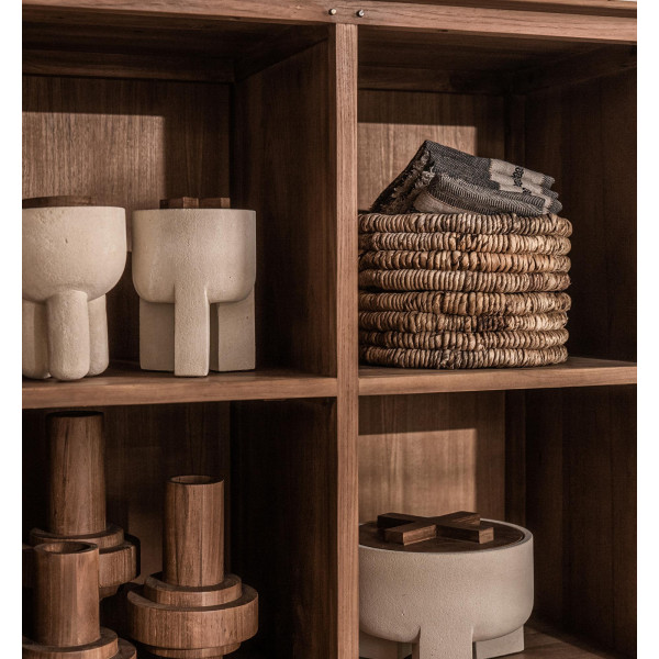 Το Bo μπολ είναι μια σειρά από βαθιά κύπελλα, που σχηματίζονται από ένα ενιαίο κομμάτι χλωμό τοπική πέτρα Javan, εργάστηκε στο χέρι από τους τεχνίτες της DBodhi. Κάθε μπολ ολοκληρώνεται με ένα όμορφο καπάκι από ξύλο τικ, σκαλισμένο και στραμμένο στην τελειότητα για να τονίσει το σχήμα X/O σχέδιο του γράμματος Χ. Διατίθεται σε δύο μεγέθη, το μπολ Bo έχει διαστάσεις 14x14x19.5cm και 24x24x17.5cm, παρέχοντας την τέλεια επιλογή για κάθε περίσταση και ανάγκη. Φτιαγμένο με μεράκι και με υψηλής ποιότητας φυσικά υλικά, το Bo bowl είναι ένα οικολογικό και κομψό προϊόν που θα προσθέσει μια μοναδική πινελιά στη διακόσμηση του σπιτιού ή στο τραπέζι σας.