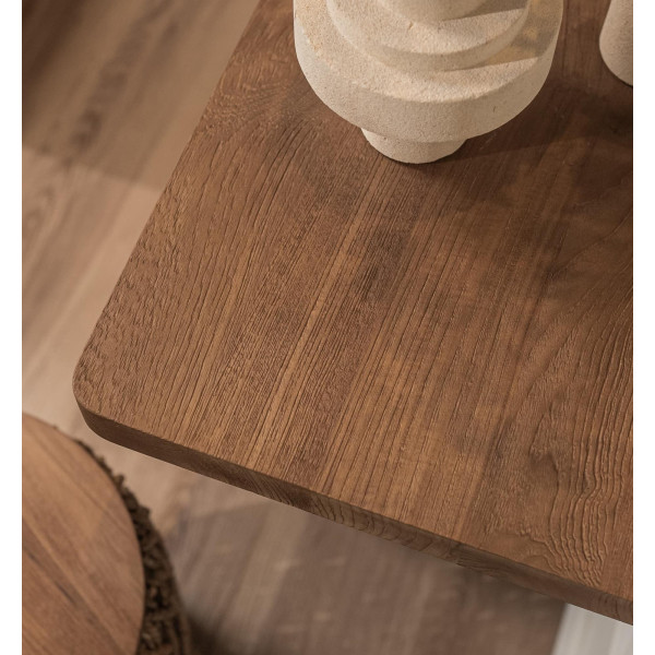Alpha bočni stol prekrasan je pomoćni stol koji je dostupan u dvije veličine. Može se savršeno koristiti uz zid ili kao neovisni komad namještaja. Čvrste, tradicionalne noge, izrađene od dvije reciklirane grede od tikovine, izvanredna su značajka pod zanatskom konstrukcijom i elegantnim stolom od tikovine.
