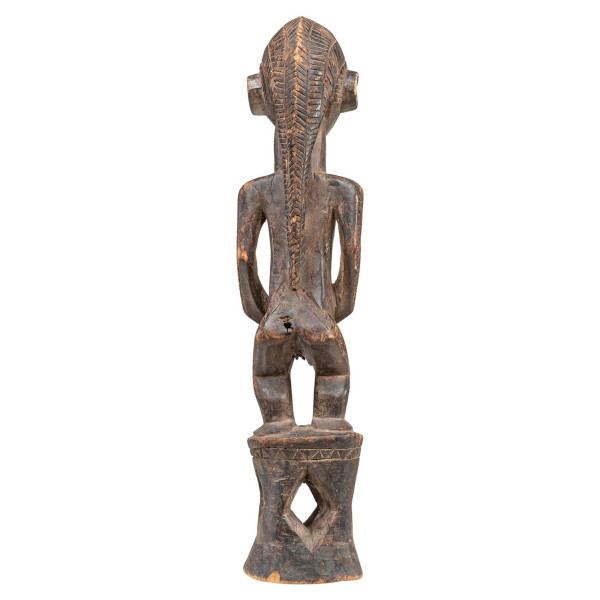 Predstavljena skulptura je djelo Hembe, dimenzija 54,5x14x11 cm, podrijetlom iz Demokratske Republike Kongo i datirano iz sredine 20. stoljeća. Ovaj je komad karakterističan za umjetnost Hemba, poznatu po prikazu figura predaka. Kao duhovni spremnik, ova je figura trebala olakšati vezu između svijeta predaka i svijeta živih, igrajući važnu ulogu u ritualima i vjerovanju u zagrobni život među Hembama.