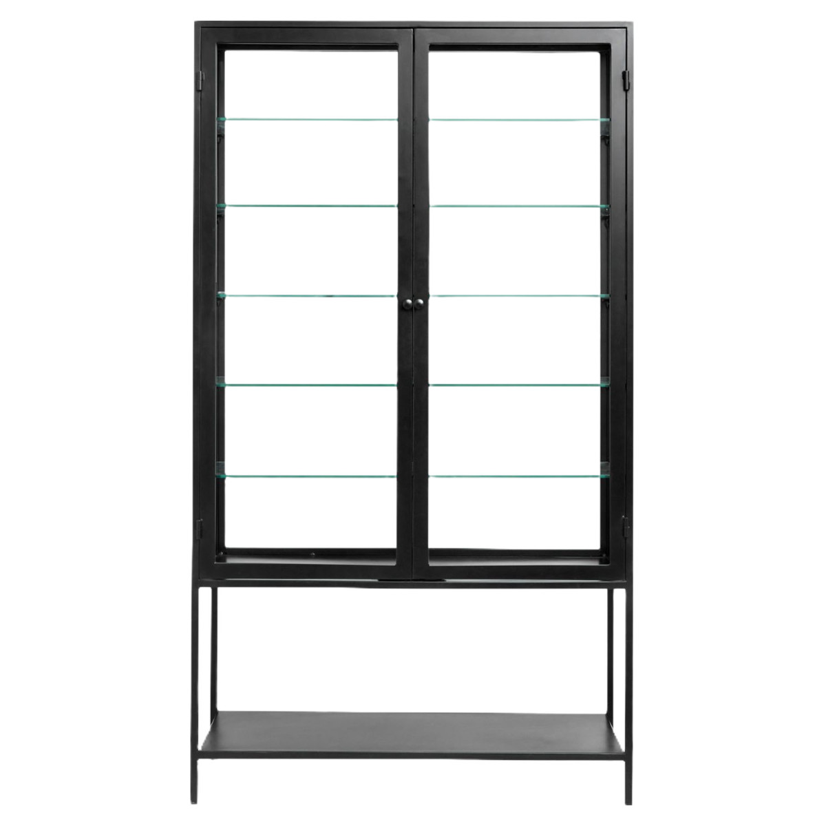 Ovaj delikatni crni ormar Mondo pružit će moderan i lagan stil koji se uklapa s ostatkom dekoracije. Ovaj ormar je izrađen od željeza s otvorenom policom na dnu. Ima šest unutarnjih staklenih polica s prednjim otvaranjem, što stvara otvoreni izgled. Ovaj komad namještaja mjeri 112x41x198 cm.