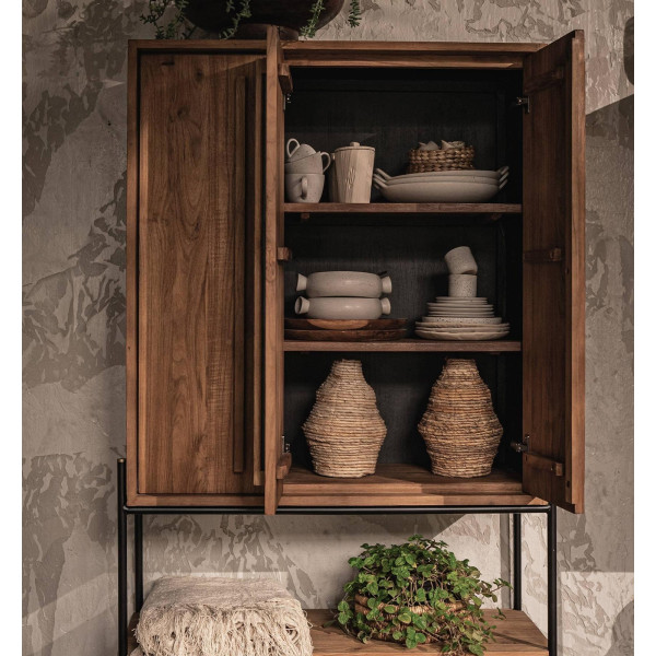 Ormar Outline s 3 vrata i 1 otvorenom policom komad je namještaja bogatog drvetom i čistom siluetom, lako se podudara s bilo kojim stilom interijera. Vrata s desne strane otvaraju se kako bi otkrila tri uklonjive police, dok vrata s lijeve strane skrivaju četiri manja, omogućujući vam da svoje stvari držite organiziranima i izvan vidokruga. Ručno izrađen od obnovljene tikovine i željeza, ovaj ormar mjeri