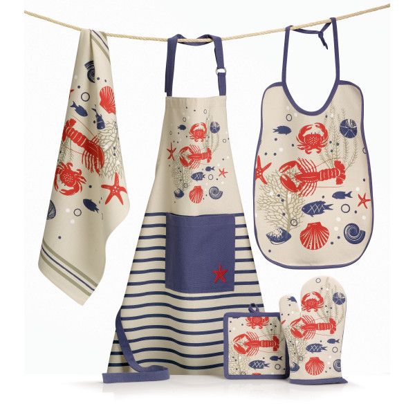 The çà et Là "Crustacés" bib posebno je dizajniran kako bi osigurao učinkovitu zaštitu dječje odjeće od mrlja tijekom obroka. Izrađen od pamuka, nudi meku teksturu na dodir i sadrži uzorke koji predstavljaju različite rakove, što mu daje izvorni izgled. Osim toga, opremljen je praktičnim isječkom koji omogućuje jednostavno i optimalno podešavanje. Tako čuva dječju odjeću održavajući je čistom i bez mrlja. Ovaj string portikla mjeri 40x55 cm.