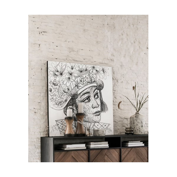Ovazidna umjetnost Balinese Kadek tvrtke MUST Living izražava uzvišen i autentičan način života. Ovo platno prikazuje balijansku ženu koja nosi tradicionalnu odjeću s indonezijskog otoka Bali. Ova slika na platnu je veličine 100x100 cm i dostupna je u crno-bijeloj boji. Da biste zidu dodali više dekora, ova zidna umjetnost uzvišena je umjetnost za objesiti u dnevnoj sobi.