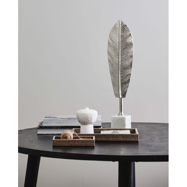 Ovaj ukras na Maui podršci pružit će lijep dodir ukrasu zahvaljujući sjajnom rezbarenom listu. Dizajniran je ručno i sastoji se od visokokvalitetnog aluminija i mramora. Ova stavka mjeri 8x19x47 cm.