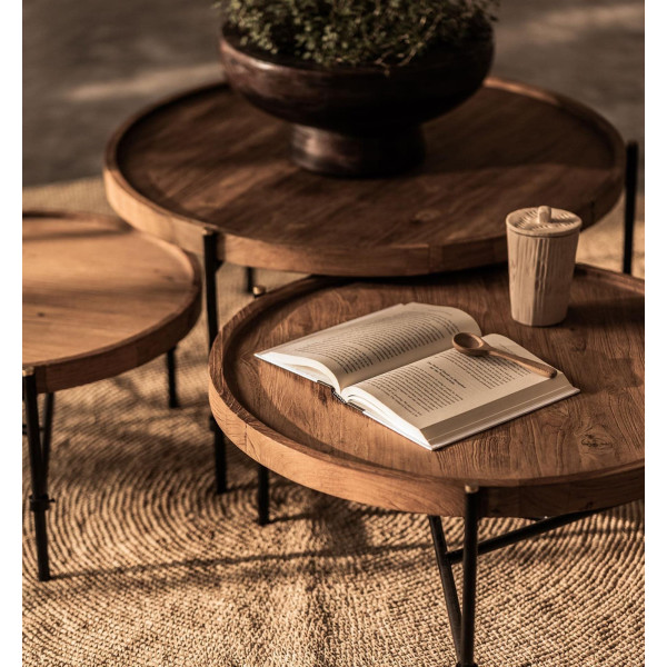 Okrugli stolić Coco savršen je dodatak vašoj dnevnoj sobi, koji donosi moderan i elegantan dodir. Ručno izrađen, ima čvrst i izdržljiv okrugli obnovljeni vrh od tikovine i suvremeni željezni okvir. Ova mješavina materijala daje ovom stoliću uravnotežen i profinjen izgled, savršen za one koji cijene modernu estetiku.
