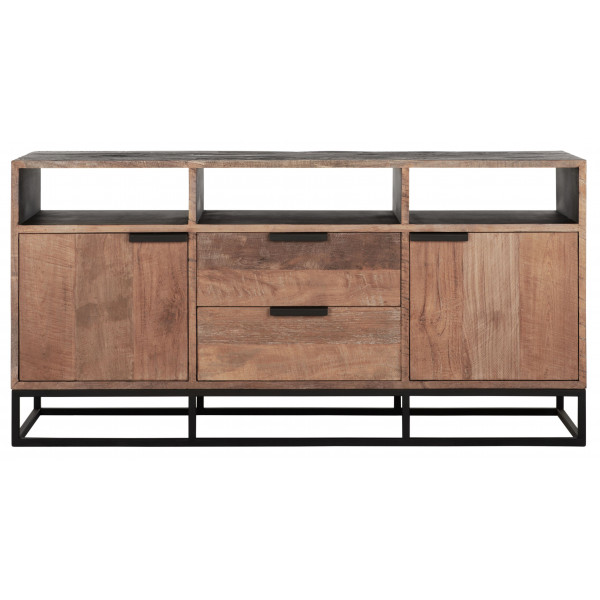 Sa svoja 3 otvorena prostora, 2 vrata i 2 ladice, TV ormarić Cosmo No.3 je odličan za pohranu. Ekološki je prihvatljiv jer je izrađen od recikliranog masivnog tikovog drveta s metalnim postoljem. Dimenzije su mu 150x40x75 cm.