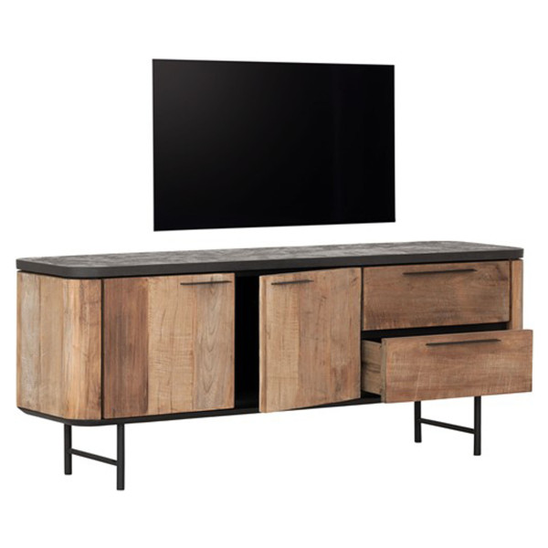 Soho TV stalak ima elegantan stil koji karakteriziraju dva vrata i dvije ladice. Ima izdašne dimenzije 150x40x60 cm, a izrađen je od tikovine i morteksa drveta, što jamči savršenu ravnotežu između stila i izdržljivosti. Njegov prirodni izgled dodaje sofisticirani dodir svakom životnom prostoru. Uz svestrani dizajn i prirodnu završnu obradu, može se skladno integrirati u različite konfiguracije dizajna inter