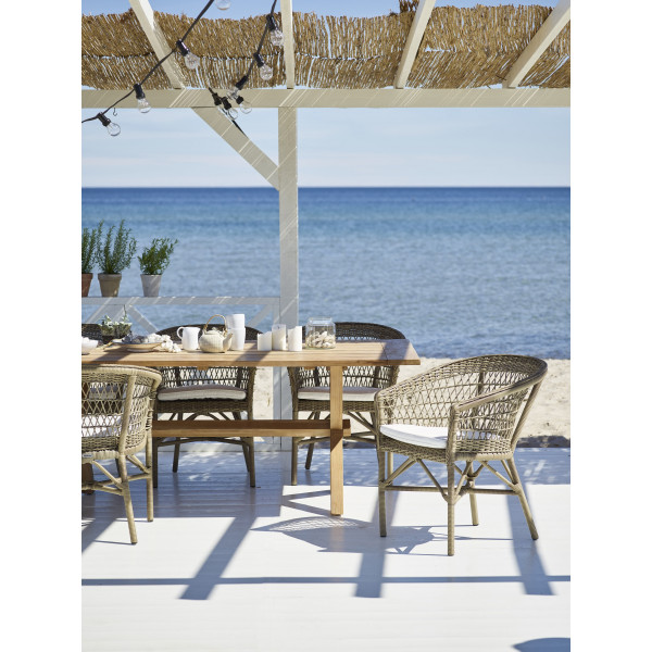Stoliceza blagovanje Emma iz kolekcije Georgia tvrtke Sika Design izrađene su od tkanine i savršene su za uređenje na otvorenom tijekom objedovanja. Ergonomski postaje udoban vrtni namještaj, posebno zahvaljujući kliznim pločama ispod naslona. Okvir ove stolice izrađen je od aluminija za izdržljiv vrtni namještaj. Sjedalo i naslon su izrađeni od sintetičkih vlakana. Ovu stolicu utkaju najbolji majstori na svijetu za jedinstveni i visokokvalitetni vrtni namještaj. Ova stolica mjeri 53x62x86 cm.