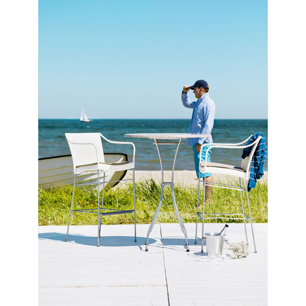 Barskastolica Pluton tvrtke Sika Design udobna je barska stolica. Ergonomski oblik stolice i nasloni za ruke jamče trenutke čiste sreće. Noge ove stolice opremljene su šipkom za odmor stopala i za udobnost tijela. Za udobnije sjedalo opremljen je personaliziranim podstavom. Dizajniran od strane Sika-Design, jastuci su izrađeni od talijanske tkanine i obrađeni teflonom za vodonepropusnost i otpornost na mrlje. Konstrukcija je izrađena od vruće pocinčanog čelika kako bi se zajamčila kvaliteta materijala i njegova otpornost na koroziju. Sjedalo i nasloni izrađeni su od sintetičkih vlakana. Ova stolica mjeri 57x54x104 cm.
