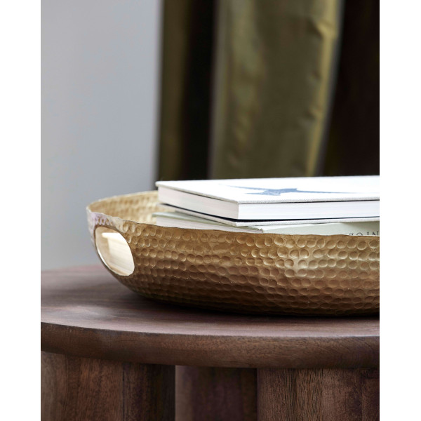 Ez a Laika alumínium tálca ideális kis tárgyak hálószobában történő tárolására. Előnyei vannak a kalapált mintáknak és az oldalán lévő nyitott fogantyúnak, hogy kényelmesebbé tegye a mozgást. Ez a tálca három méretben kapható arany színben.