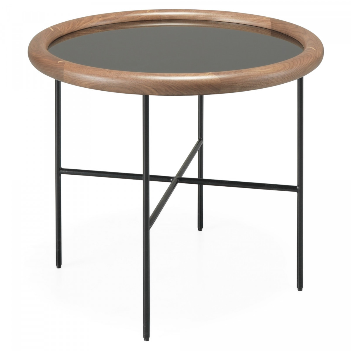 A Side by Side dohányzóasztal üveglapos változata fém lábakkal, tömör diófa szegéllyel és üveglappal készül. Ideális nappali és munkahelyi terekbe. A lekerekített szélű lap és a csatlakozások részletei arra csábítanak, hogy megérintsük és használjuk. A három különböző méretű asztal lehetővé teszi, hogy egyenként vagy egymás mellé helyezve használjuk őket.