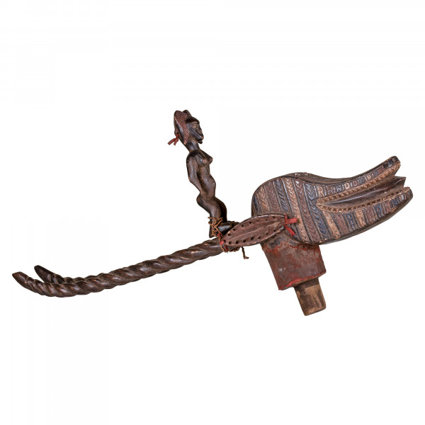 Eza gyönyörű dekoratív Tyiwara címer maszk gyönyörű a belső tér díszítésére. A 20. századi bamana mali törzs egyedi és etnikai kialakítása kivételessé teszi. Ez az afrikai dekoratív tárgy az orikteróp, az antilop és a pangolin közötti állatot képviseli. Egy táncbemutató során használják, amely jó gazdákat tanított és dicsért. Ez a maszk fából és szövetből faragott, 22x40x94 cm méretű.