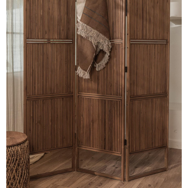 A Hopper térelválasztó egy három paneles képernyő, kifinomult kialakítással, amely egy kis varázst kölcsönöz a klasszikus belső térnek. Teak keretekből készült, ez az elválasztó gyönyörű tisztelgés a múlt előtt. Ennek a szekrénynek az összes eleme szakszerűen újrahasznosított teakból készült, és tökéletesen kézműves. Ez az elegáns és nyugtató képernyő tökéletes kiegészítője minden szobatípusnak. Mérete 146,5 x 3 x 195 cm, ideális méret a terek eleganciával történő elválasztására.