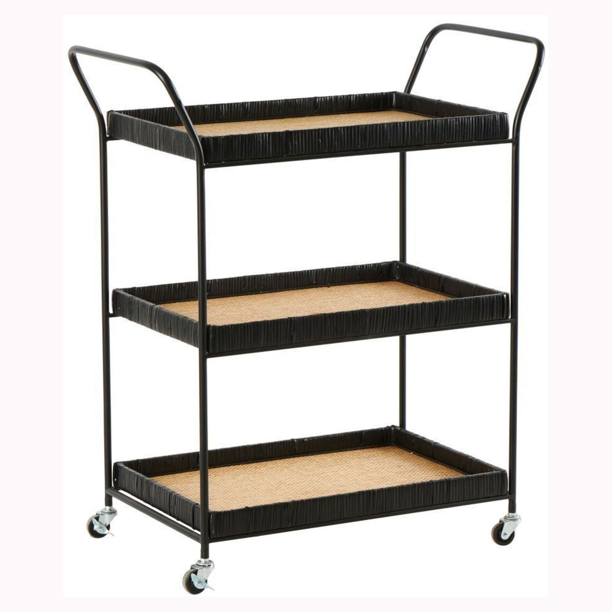 Ez a Mouti tálalószekrény gondosan készült, kiváló minőségű anyagok keverékével. Erős vasból, tartós rétegelt lemezből és természetes rattanból készül. Funkcionális és praktikus méretei 70x39x85 cm, ez a kocsi további tárhelyet kínál a napi igényekhez. Fekete és természetes színű, esztétikus és időtlen kontrasztot teremtve. Ez a sokoldalú és stílusos tálalószekrény varázst kölcsönöz otthonának, miközben praktikus tárolási megoldást kínál az alapvető tárgyak számára.