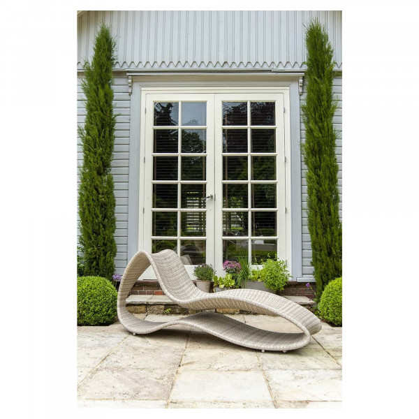Az Alexander Rose Ocean Pearl kínálatából származó szörf napozóágy ideális a kerti bútorok vagy a medence melletti barnulás kikapcsolódásához és finomhangolásához. A 210x62x86 cm méretű és természetes színű, ez a napozóágy optimális kényelmet biztosít a csendben való letelepedéshez. Ez a kerti bútor alumíniumból készült, kézzel fonott, lapos viro szálakkal. A bútorok anyagainak geometriai alakja és minősége egyedülálló, és a hátsó alaknak megfelelően légkört teremt.