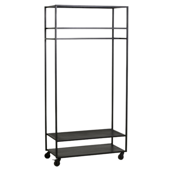 Az Alta vas kabáttartó ideális bútor ruhák tárolására. Két perforált polccal rendelkezik, lógó rúddal a ruhákhoz. Ez a szekrény modern megjelenésű, 45x93x190 cm méretű, és a zárható kerekeknek köszönhetően könnyen mozgatható.
