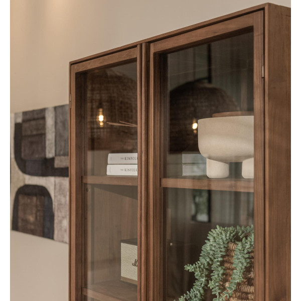 A Motion üvegszekrény elegáns és kifinomult bútordarab. Üveghomlokzata szakszerűen megtervezett belső teret tár fel, teak ajtókkal, amelyeket hízelgő teak fogantyúk kereteznek. Minden harmonikusan keveredik a kézzel szőtt kókuszlevelekkel borított fiókokkal, amelyek a bútorok alsó harmadát foglalják el. A szerkezet és az állítható polcok szintén visszanyert teakből készülnek, fekete színű szekrénybelsővel. Minden kézzel épül, figyelemre méltó kivitelezéssel. A bútorok mérete 90x45x200 cm.