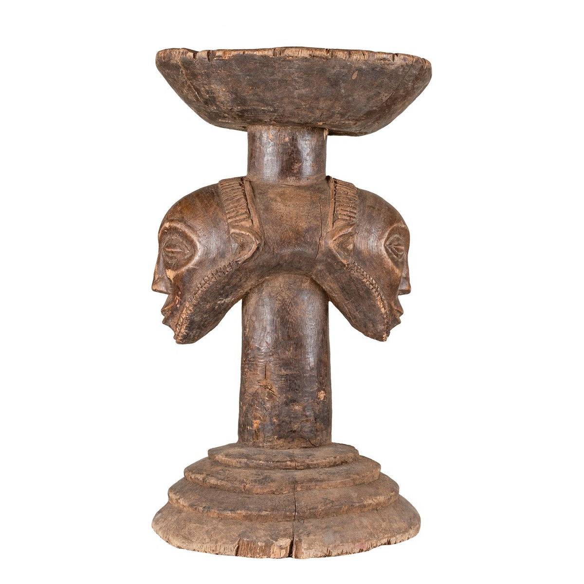 Ez az egyedülálló modell egy Luba Caryatide fa szék, amely a Kongói Demokratikus Köztársaságból származik és a 20. század közepéből származik. Ez a széklet mérete 28x27,5x51 cm. Emberi alak alakjában van faragva, kör alakú talppal és egyformán kör alakú tálcával az alak fejére helyezve. Az ilyen széklet a hatalom és a tekintély szimbólumai a luba kultúrák vezetői körében. A szobor részletes, arcvonásokat és dekoratív mintákat mutat a testen.