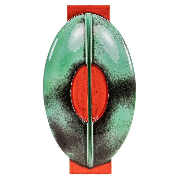 Az Iris váza egy elegáns dekorációs darab, amelynek mérete 13x21,5x40 cm. Kiváló minőségű majolikából készült, hogy tartósságot és ellenállóságot biztosítson. Ez a váza zöld és piros színeket ötvöz egyedi stílusban. Az Iris váza formája hosszú és keskeny, lágy és elegáns ívekkel.