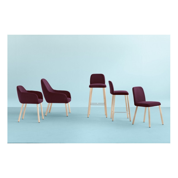 The Myra 657 armchair is upholstered in the seat and back. Its fabric upholstery is customizable according to a wide selection. Its frame is composed of 4 round wooden legs. This armchair measures 61x57x76 cm, with a seat height of 48 cm.