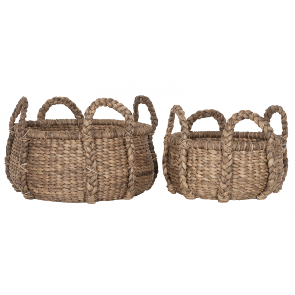 The MUST Living Colony basket set is made from water hyacinth. The baskets measure Ø26x21 cm and Ø54x26 cm.
